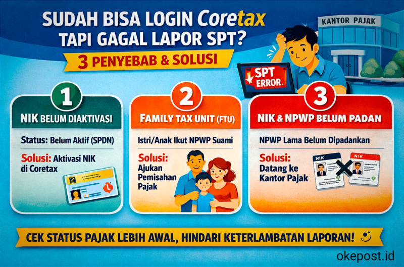 Solusinya, wajib pajak perlu mendatangi kantor pajak untuk melakukan proses pemadanan NIK dan NPWP agar statusnya aktif sepenuhnya di sistem Coretax.