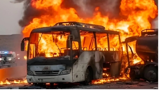 “Membakar seluruh kendaraan, termasuk koper dan barang bawaan jamaah yang berada di dalam bus,” tuturnya.