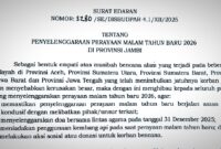 Okepost.id, Jambi – Pemerintah Provinsi Jambi menerbitkan Surat Edaran Nomor 3280/ SE/ DISBUDPAR – r.1/ XII/2025 tentang Penyelenggaraan Perayaan Malam Tahun Baru 2026 di…