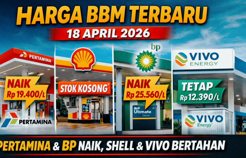Okepost.id – Harga Bahan Bakar Minyak (BBM) di sejumlah Stasiun Pengisian Bahan Bakar Umum (SPBU) resmi mengalami penyesuaian per Sabtu, 18 April 2026. Kenaikan harga terjadi pada beberapa jenis BBM yang dijual oleh Pertamina dan BP-AKR.